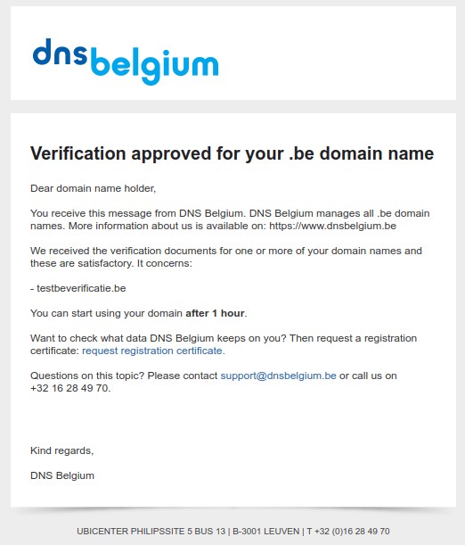 Uitgebreide informatie over deze verificatieprocedure vindt u op de website van DNS Belgium: